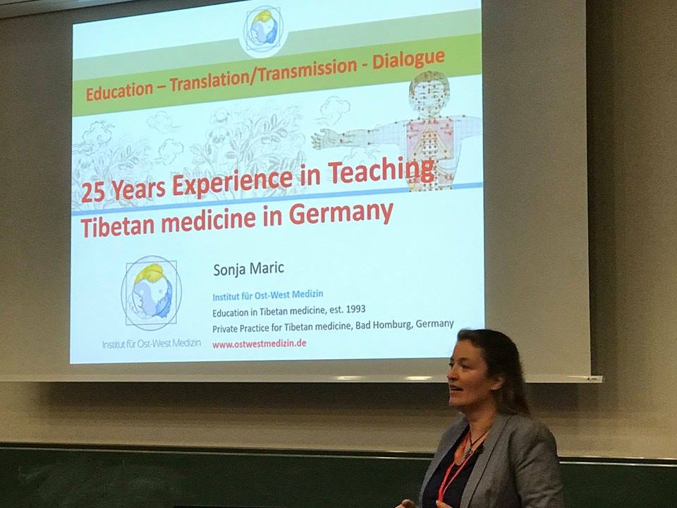 „25 Jahre Erfahrung mit Ausbildung Tibetischer Medizin in Deutschland“ stellte Sonja Maric vom Institut für Ost-West Medizin die Entwicklung und Etablierung der Tibetischen Medizin im deutschsprachigen und im weiteren Sinne europäischen Raum vor.